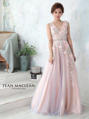 Lあり!存在感抜群の立体フラワードレス♪ SALE【JEANMACLEAN/ジャンマクレーン】肩リボン立体フラワー刺繍 チュール バースデー プリンセス フレアロングドレス(91648)