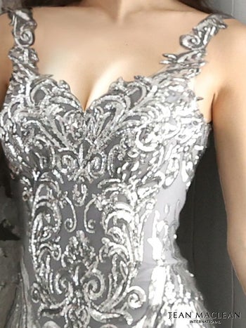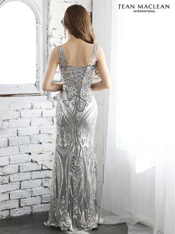 ボディ全体のレースにスパンコールを施したロングドレス。