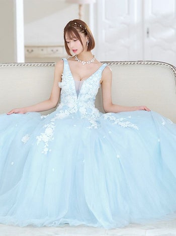 3. 【LaLaTulle USA/インポート】バストシースルー ノースリーブ フラワー刺繍 バックオープン チュール バースデー Aラインロングドレス