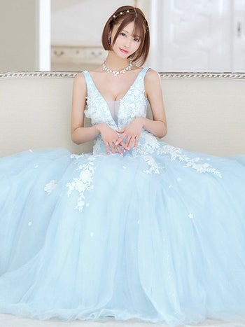 透明感抜群のプリンセスドレス☆ 【LaLaTulle USA/インポート】バストシースルー ノースリーブ フラワー刺繍 バックオープン チュール バースデー Aラインロングドレス