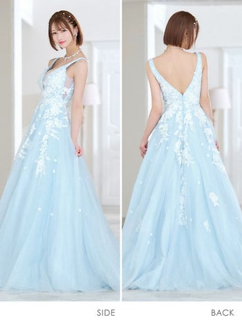 バストシースルー ノースリーブ フラワー刺繍 バックオープン チュール バースデー Aラインロングドレスのスペック表
