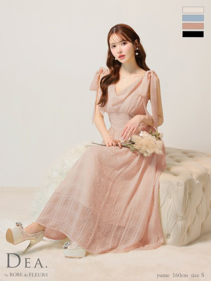 他の画像を見る Lあり!高級感抜群★ 【DEA.by ROBE de FLEURS/ディア】ショルダーリボン チェック柄 シフォン エレガント オープンバスト ノースリーブ Aラインロングドレス (DE3368) ¥ 31,680 税込 詳細を見る お気に入りに登録する