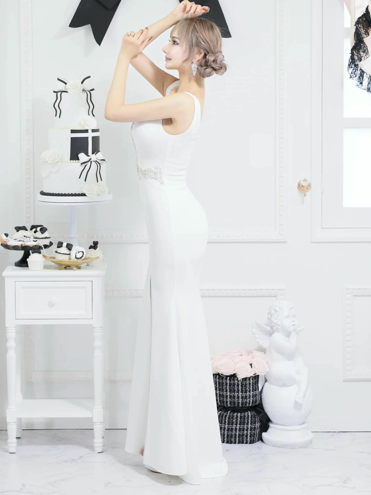 他の画像を見る スタイルアップ効果抜群☆ 【GLAMOROUS/グラマラス】ワンカラー ジップデザイン ノースリーブ セットアップ ロングテールドレス(gmsv855) ¥ 29,700 税込 詳細を見る お気に入りに登録する