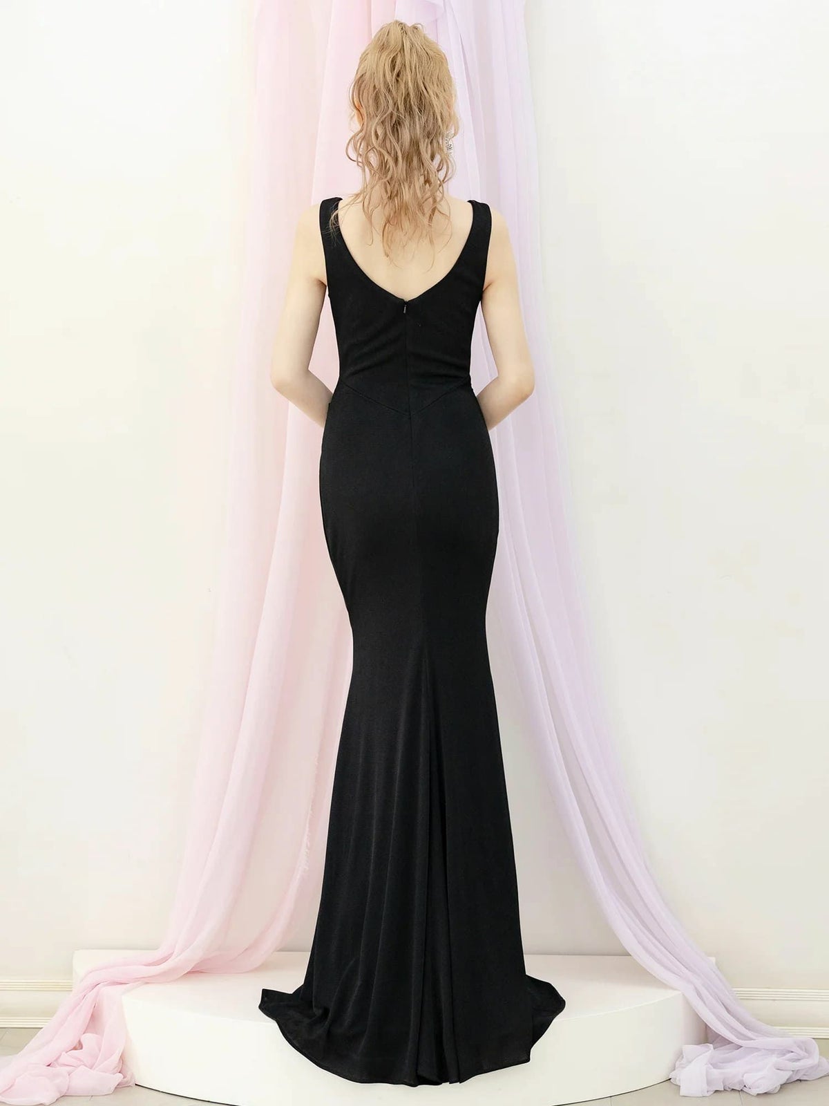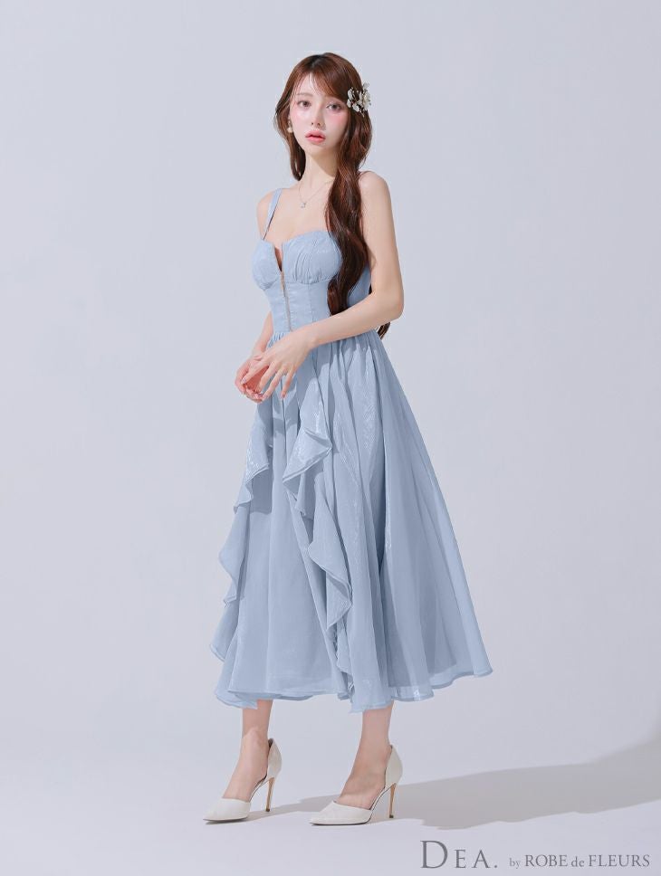 他の画像を見る Lあり!高級感抜群★ 【DEA.by ROBE de FLEURS/ディア】オープンバスト ジップデザイン サテン フリル エレガント ノースリーブ Aラインロングドレス (DE3927) ¥ 30,580 税込 詳細を見る お気に入りに登録する