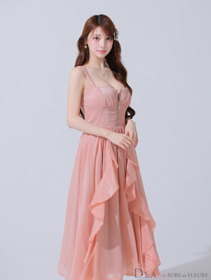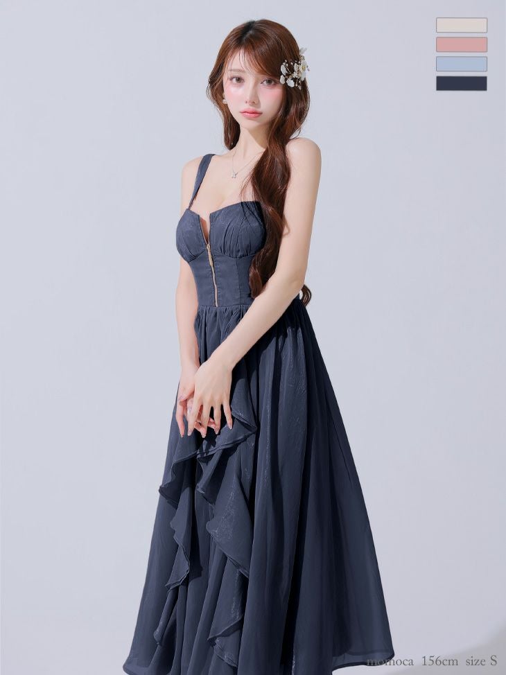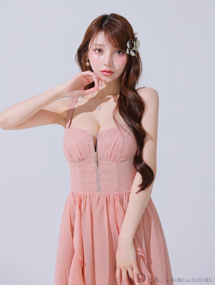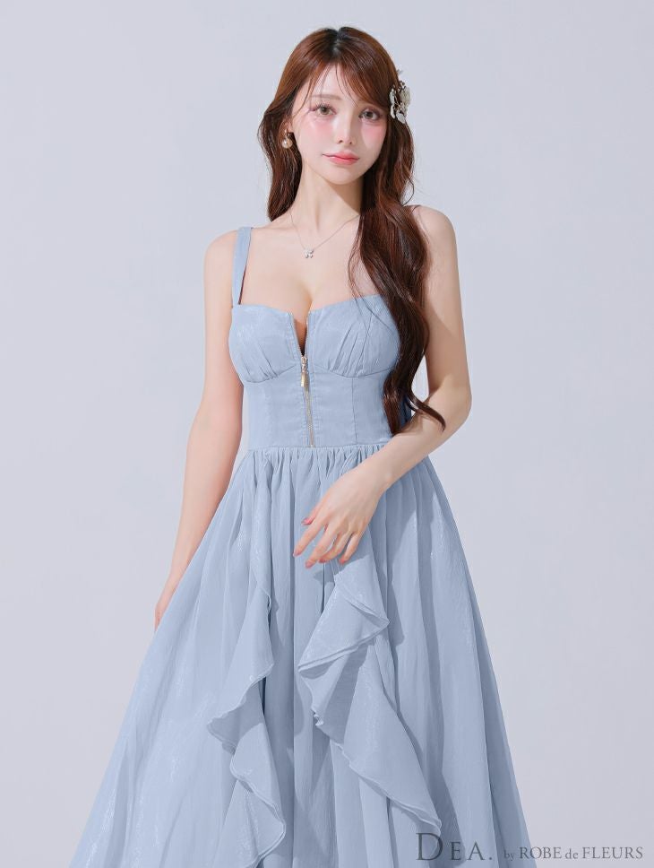 他の画像を見る Lあり!スカートのボリューム感がポイント★ 【DEA.by ROBE de FLEURS/ディア】ジップデザイン サテン フリル エレガント ノースリーブ オープンバスト Aラインロングドレス (DE3927) ¥ 30,580 税込 詳細を見る お気に入りに登録する
