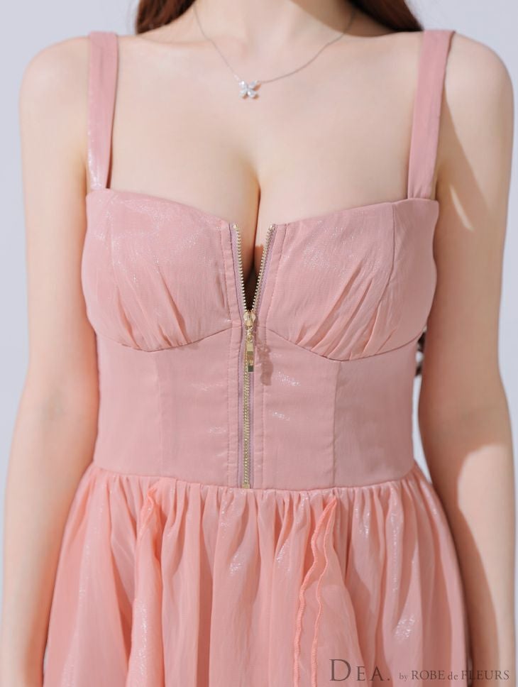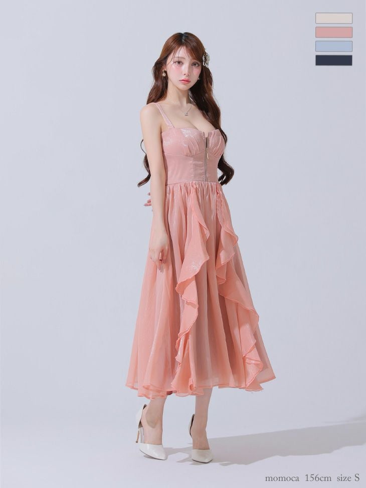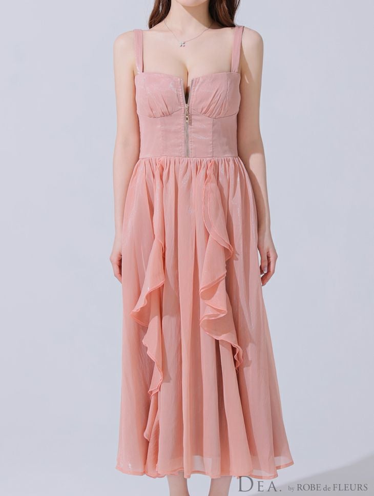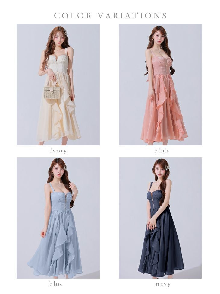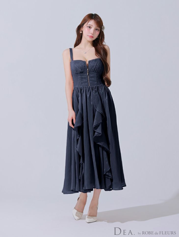 他の画像を見る Lあり!スカートのボリューム感がポイント★ 【DEA.by ROBE de FLEURS/ディア】ジップデザイン サテン フリル エレガント ノースリーブ オープンバスト Aラインロングドレス (DE3927) ¥ 30,580 税込 詳細を見る お気に入りに登録する