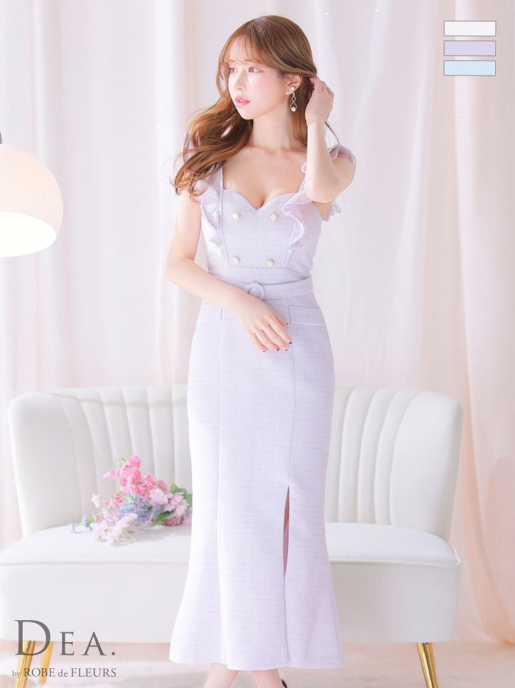 他の画像を見る Lあり!脚長効果も抜群♪ SALE【DEA.by ROBE de FLEURS/ディア】ベルト サイドスリット マーメイド 肩フリル ノースリーブ ダブルボタン ツイード タイトロングドレス(DE3237) SALE 定価 ¥ 29,480 → ¥ 23,584 税込 詳細を見る お気に入りに登録する