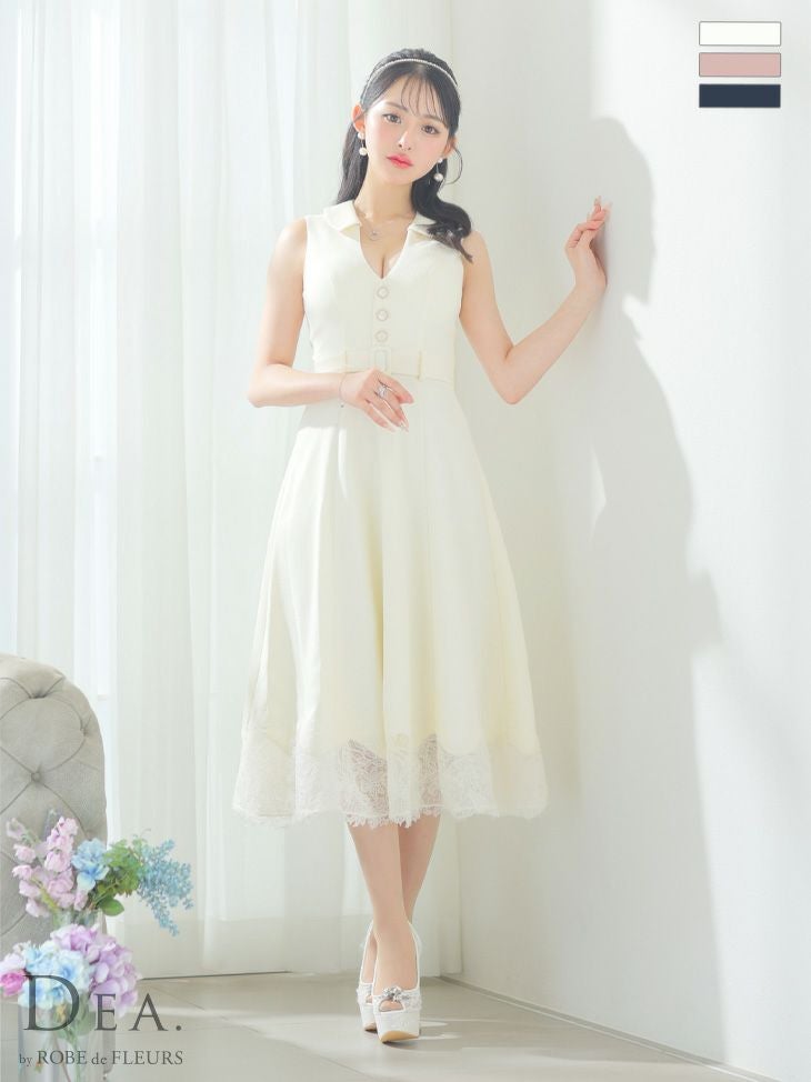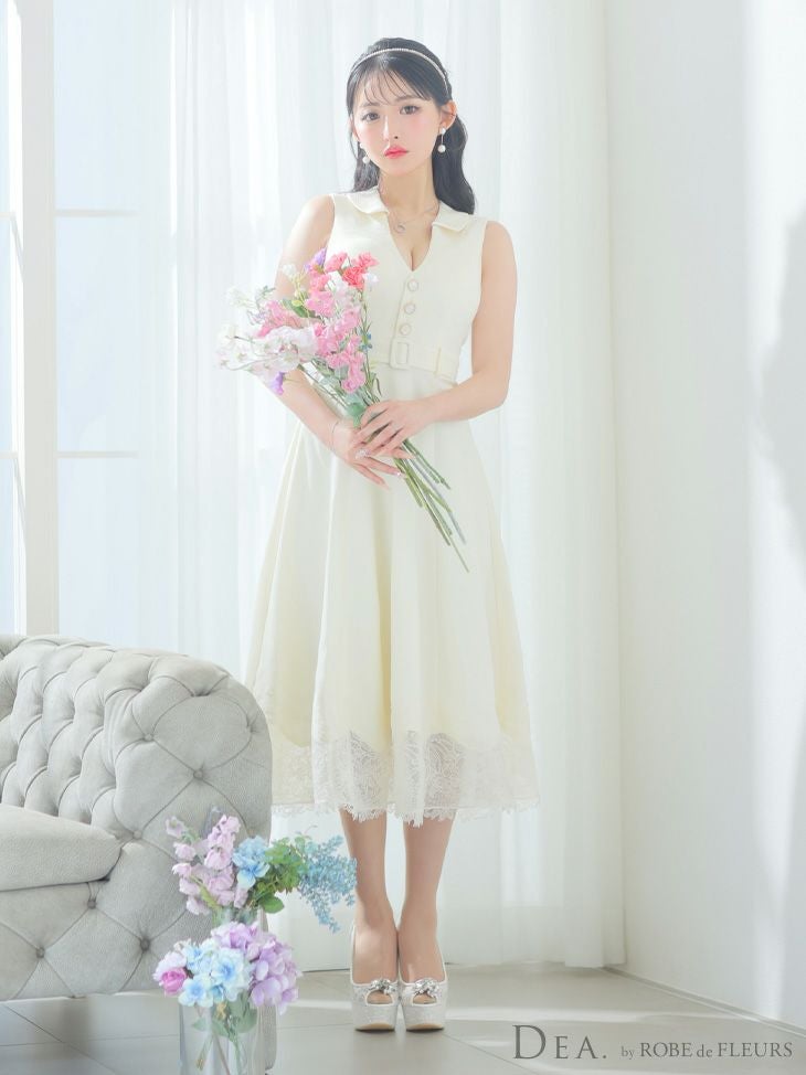 他の画像を見る XS~Lあり!エレガントなミディアムドレス♪ 【DEA.by ROBE de FLEURS/ディア】サマーツイード ノースリーブ 襟付き 裾レース フレア ワンピース(DE3170) ¥ 28,380 税込 詳細を見る お気に入りに登録する