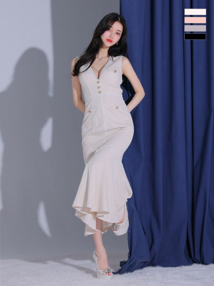 他の画像を見る Lあり!スタイルアップ効果あり★ SALE【DEA.by ROBE de FLEURS/ディア】オープンバスト ノースリーブ シンプル ゴールドボタン ラメ マーメイドロングドレス(DE3720) SALE 定価 ¥ 33,880 → ¥ 28,798 税込 詳細を見る お気に入りに登録する
