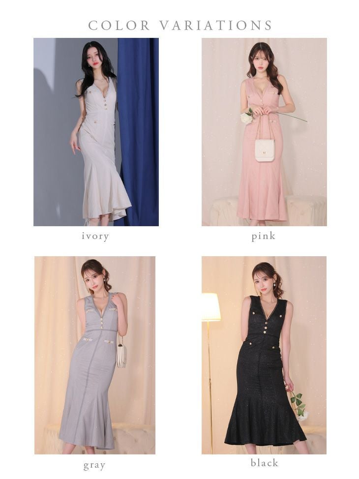 他の画像を見る Lあり!上品さとセクシーさを兼ね備えた1枚★ 【DEA.by ROBE de FLEURS/ディア】オープンバスト ツイード ボタン セットアップ シンプル ノースリーブ マーメイドロングドレス (DE3273) ¥ 30,580 税込 詳細を見る お気に入りに登録する