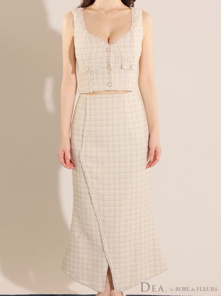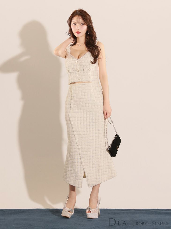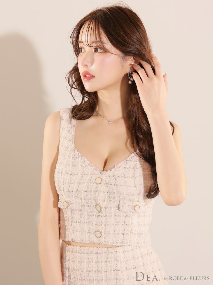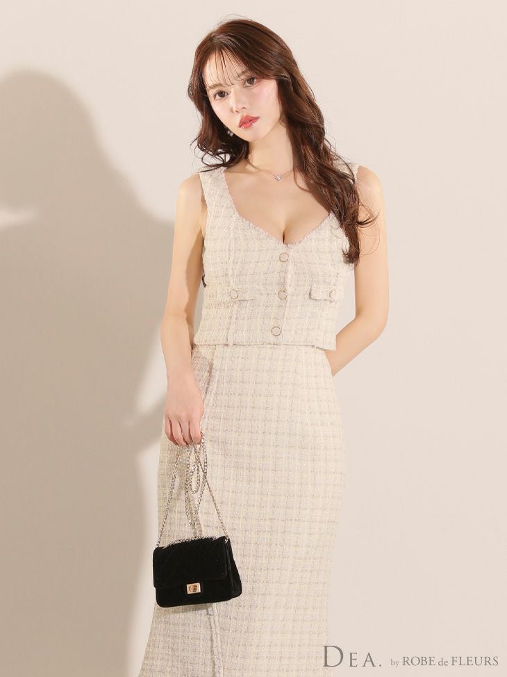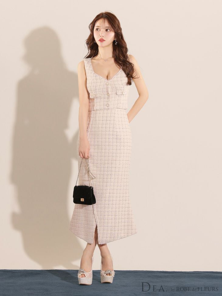 他の画像を見る Lあり!洗練された印象に★ 【DEA.by ROBE de FLEURS/ディア】ノースリーブ オープンバスト ツイード ボタン セットアップ シンプル マーメイドロングドレス (DE3273) ¥ 30,580 税込 詳細を見る お気に入りに登録する