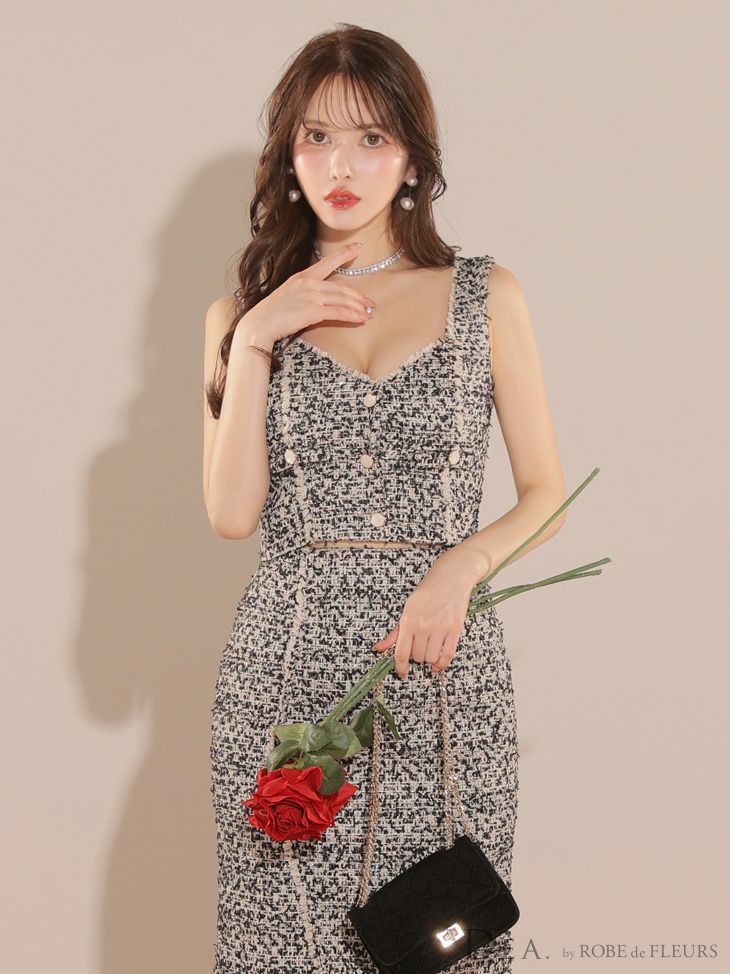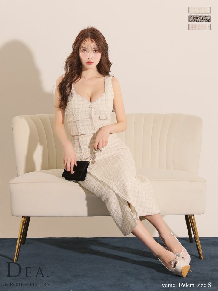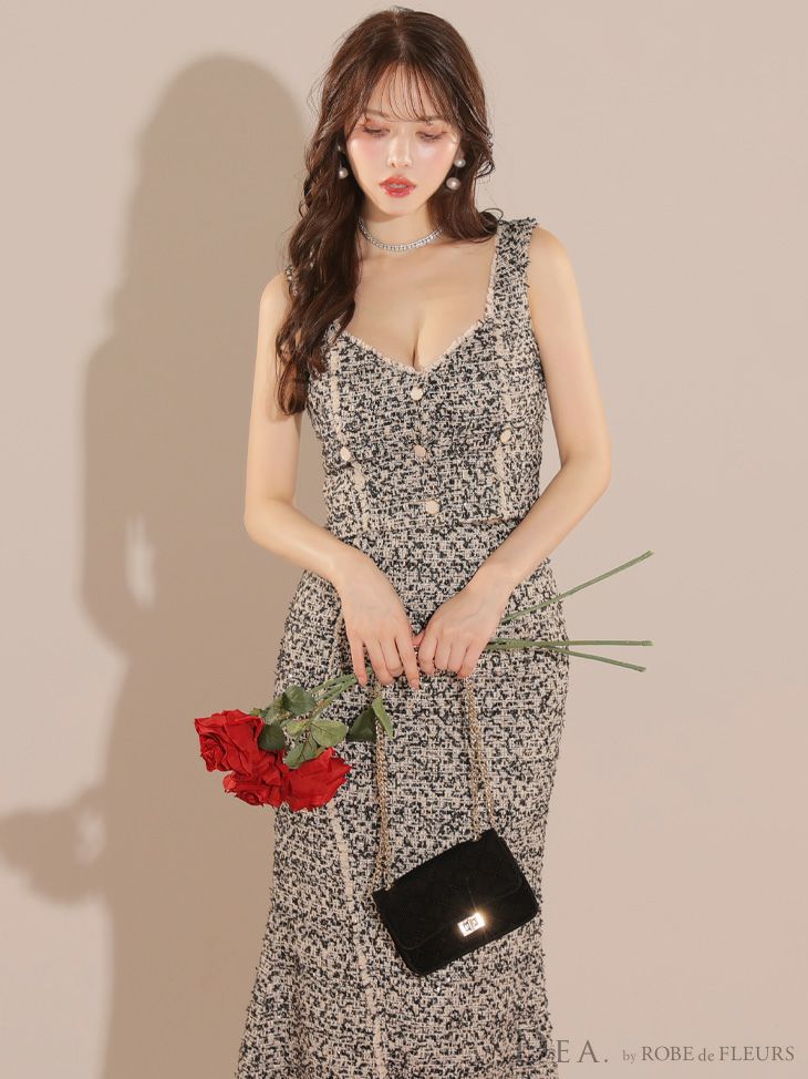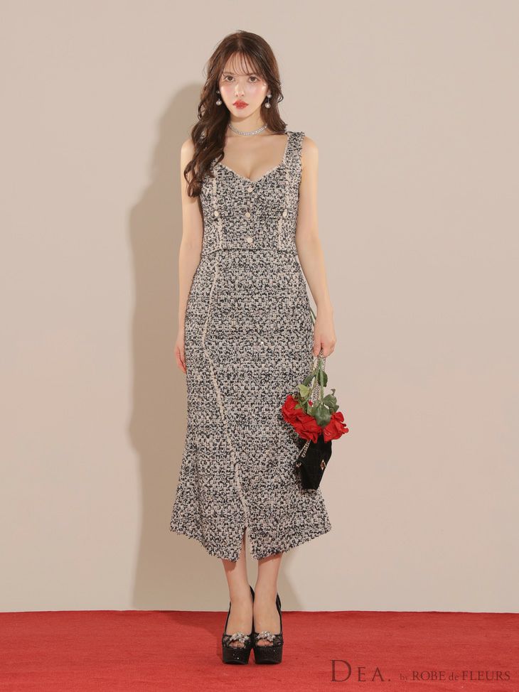 他の画像を見る Lあり!高級感溢れるドレス★ 【DEA.by ROBE de FLEURS/ディア】シンプル ノースリーブ オープンバスト ツイード ボタン セットアップ マーメイドロングドレス (DE3273) ¥ 30,580 税込 詳細を見る お気に入りに登録する