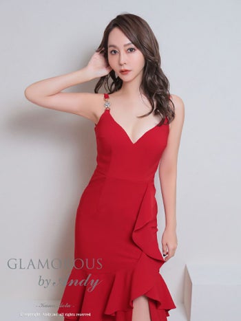 4. 【GLAMOROUS/グラマラス】ワンカラー フリル ストレッチ スリット バックル キャミソール ロングテールドレス(gmsv801)