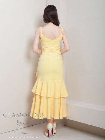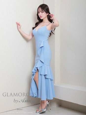 3. 【GLAMOROUS/グラマラス】ワンカラー フリル ストレッチ スリット バックル キャミソール ロングテールドレス(gmsv801)