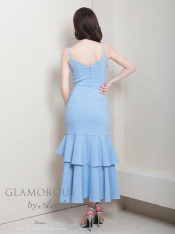 3. 【GLAMOROUS/グラマラス】ワンカラー ストレッチ スリット フリル バックル キャミソール ロングテールドレス(gmsv801)