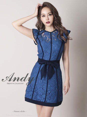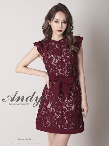 Andy アンディ 花柄 レース ノースリーブ リボン フレアミニドレス