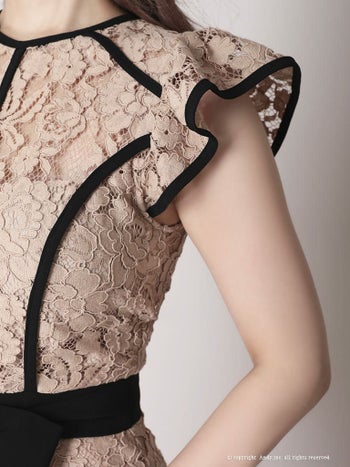 フリル ショルダーリボン アシンメトリー 七分袖 袖あり 総レース タイトミニドレスのデティール2