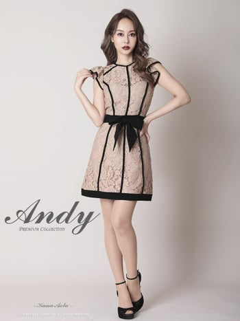 Andy アンディ リボン 花柄 レース ノースリーブ フレアミニドレス