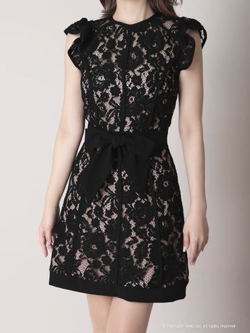 フリル ショルダーリボン アシンメトリー 七分袖 袖あり 総レース タイトミニドレスのメイン画像4 フリル ショルダーリボン アシンメトリー 七分袖 袖あり 総レース タイトミニドレスのメイン画像4