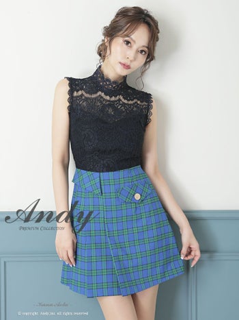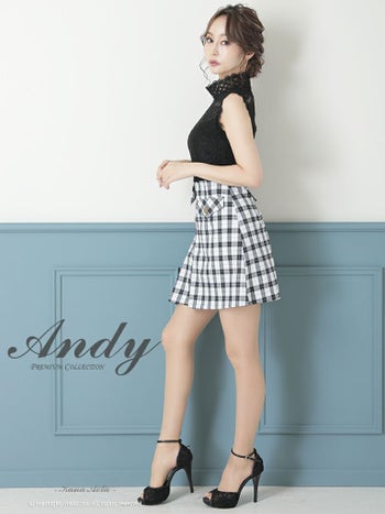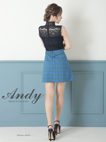 キャバドレス ミニドレス Andy アンディ 刺繍レース チェック柄 ノースリーブ セットアップ風 フレアミニドレス