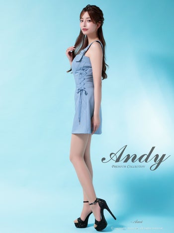 キャバドレス Andy レースアップ リボン ベルトデザイン ワンカラー ノースリーブ フレアミニドレス