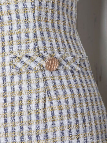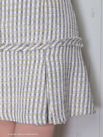 ツイード チェック柄 ノースリーブ 飾りポケット 飾りボタン フレアミニドレスの詳細画像1
