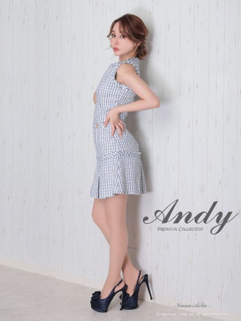 キャバドレス フレアミニドレス Andy アンディ ツイード チェック柄 ノースリーブ 飾りポケット 飾りボタン フレアミニドレス