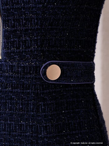 3. 【Andy/アンディ】襟付き ジップデザイン 金ボタン スリット チョーカー風 ノースリーブ 長袖 タイトミニドレス(anon2875)