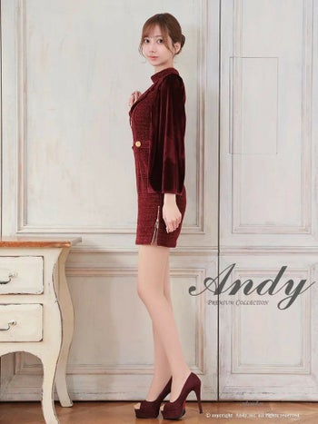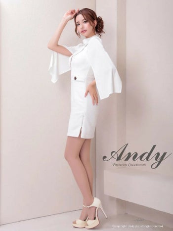 キャバドレス ミニドレス Andy アンディ 襟付き ジップデザイン 金ボタン スリット チョーカー風 ノースリーブ 長袖 タイトミニドレス
