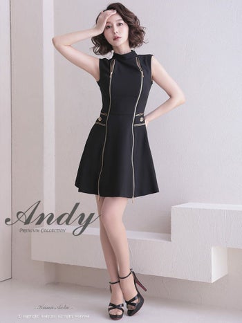 キャバドレス Andy ガーリー バイカラー ハイネック ノースリーブ ダブル ジップデザイン 飾りボタン フレアミニドレス