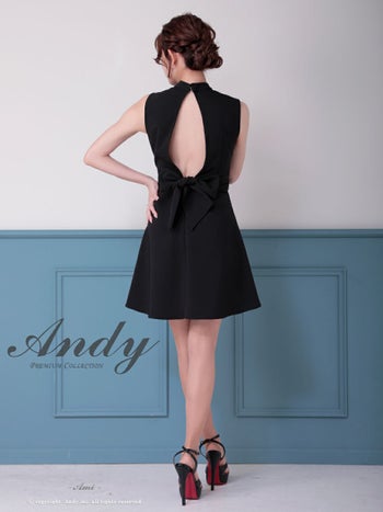 3. 【Andy/アンディ】ハイネック くびれ透け バックカット リボン ノースリーブ ジップデザイン フレアミニドレス(anon2913)