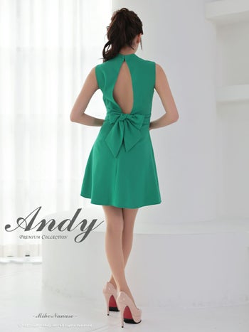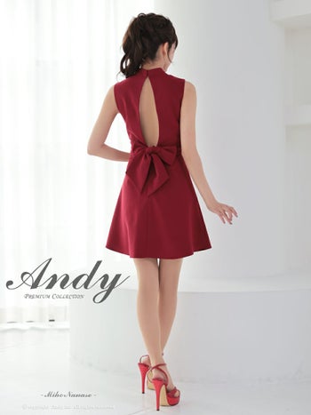 XSあり!バックリボンで後ろ姿まで可愛らしく♪ 【Andy/アンディ】ハイネック くびれ透け バックカット リボン ノースリーブ ジップデザイン フレアミニドレス(anon2913)