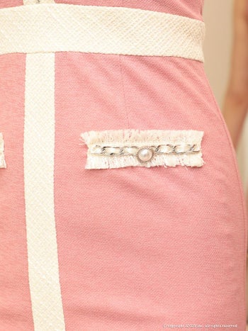襟付き ツイードライン チェーン パールボタン ノースリーブ タイトミニドレスのメイン画像3
