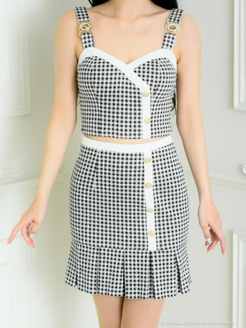 バスト約86cm~ ウエスト約64cm~ ヒップ約89cm~ トップス着丈(脇下~)約23cm スカート着丈約46cm