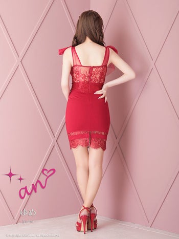 キャバドレス an アン ショルダーリボン チュール フラワーレース ノースリーブ タイトミニドレス