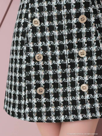3. 【an/アン】ガーリー ボタン チェック ツイード ノースリーブ フレアミニドレス (aoc3477)