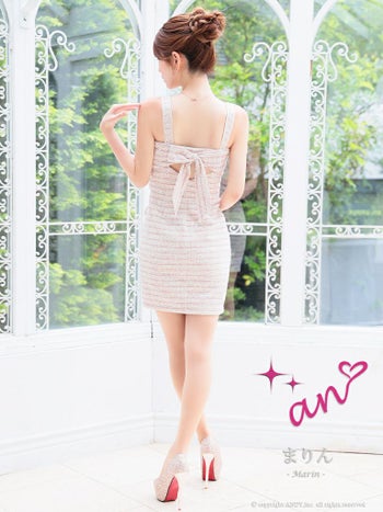 キャバドレス ミニドレス an アン ジップデザイン  ツイード チェーン バックル リボン 飾りポケット ノースリーブ タイトミニドレス