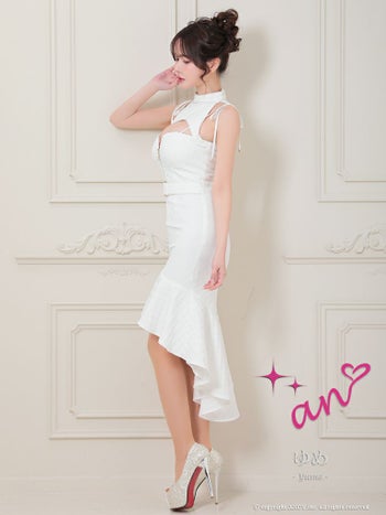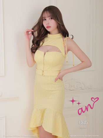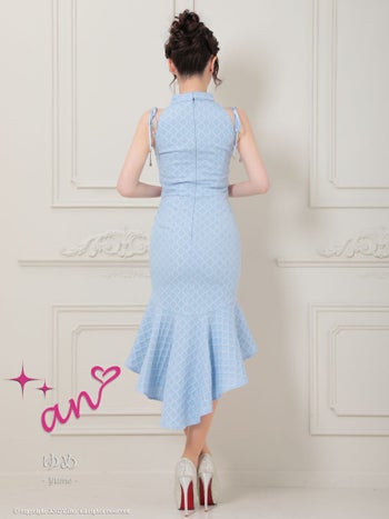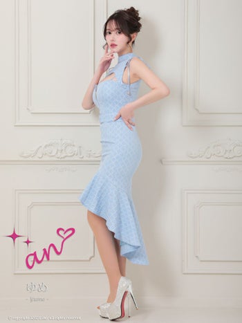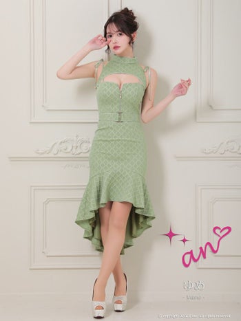 キャバドレス ロングテールドレス an アン ジップデザイン ノースリーブ ハイネック マーメイド ベルト