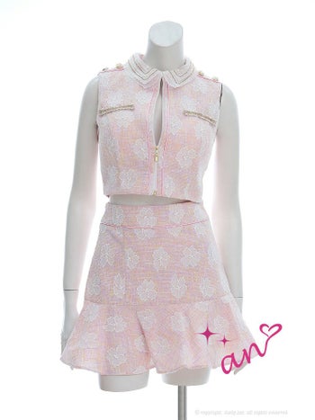 キャバドレス ミニドレス an アン セットアップ 襟付き ジップデザイン ノースリーブ チェック柄 裾フリル レース フレアミニドレス