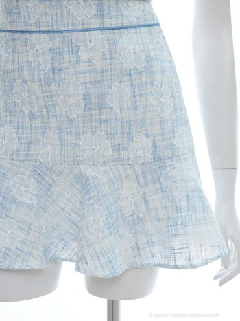 セットアップ 襟付き ジップデザイン ノースリーブ チェック柄 裾フリル レース フレアミニドレスのメイン画像5