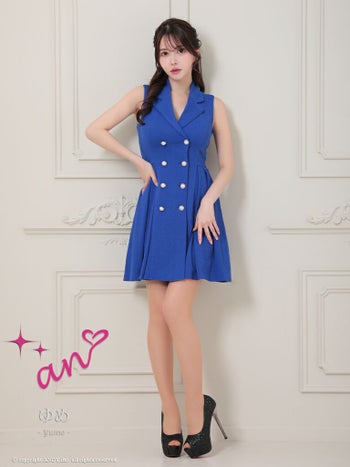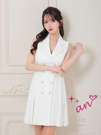 キャバドレス ミニドレス an アン 襟付き ジャケット風 パールボタン ノースリーブ プリーツ Aライン フレアミニドレス