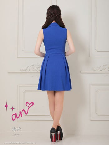 3. 【an/アン】襟付き ジャケット風 パールボタン ノースリーブ プリーツ Aライン フレアミニドレス(aoc3681)