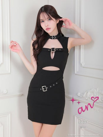 XSあり!ベルトデザインがオシャレ♪ 【an/アン】ジップデザイン セクシー ベルト ホルターネック オープンバスト スリット ノースリーブ タイトミニドレス(aoc3686)