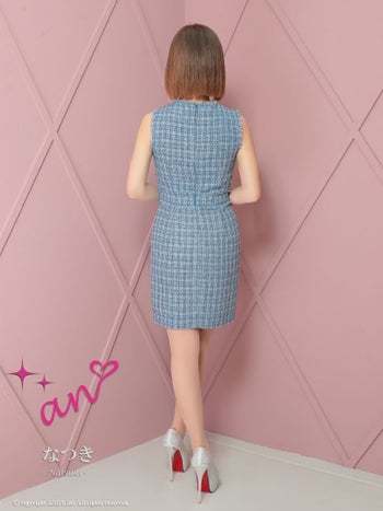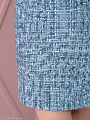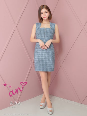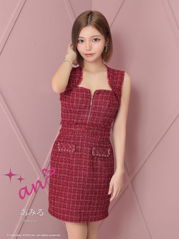 キャバドレス タイトミニドレス an アン チェーン ツイード 飾りポケット ジップデザイン ノースリーブ