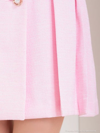 ワンカラー ジャケット風 プリーツ Aライン パールボタン 襟付き ノースリーブ フレアミニドレスのメイン画像3
