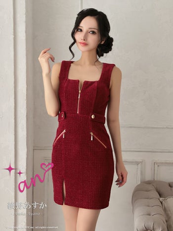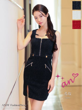 キャバドレス ミニドレス an アン スリット ジップデザイン 飾りポケット ビジュー ワンカラー ノースリーブ タイトミニドレス