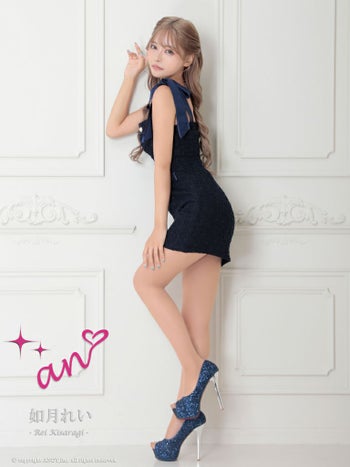 3. 【an/アン】ジップデザイン リボン 飾りポケット ビジュー ノースリーブ スパンコール カットデザイン タイトミニドレス(aoc3771)