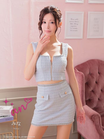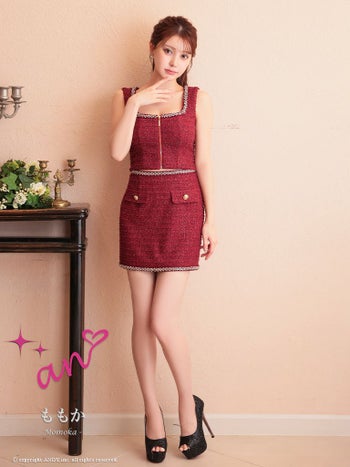 キャバドレス ミニドレス an アン ビジュー ジップデザイン 飾りポケット 金ボタン セットアップ ノースリーブ タイトミニドレス