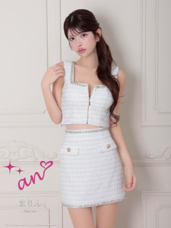 キャバドレス ミニドレス an アン 飾りポケット ジップデザイン ビジュー 金ボタン セットアップ ノースリーブ タイトミニドレス