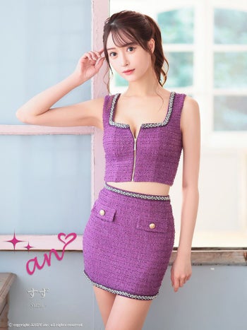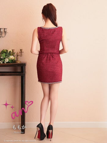 キャバドレス an キュート 飾りポケット ジップデザイン ビジュー ノースリーブ 金ボタン セットアップ タイトミニドレス